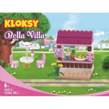 Sklepik to propozycja z serii dla dziewczynek Bella Villa. Zestaw składa się z 88 elementów klocków i pozwala nam zbudować stragan. Klocki mają ładne żywe kolory, a zestaw posiada bardzo dużo różnych dodatków scenerii.