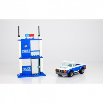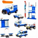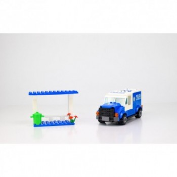 Jeden zestaw policyjny z którego można zbudować 3 różne wozy bojowe wraz z budynkami.